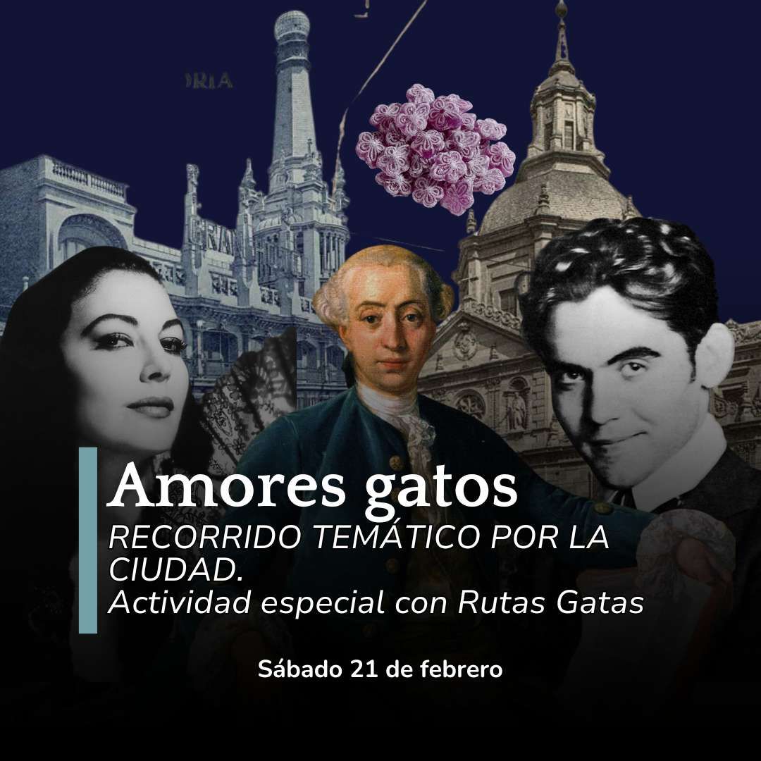 En la ruta "Amores Gatos" caminamos Madrid tejiendo un relato de la ciudad como escenario en el que se suceden imborrables historias de amor, ardientes pasiones y también de grandes rupturas y desconsuelos.